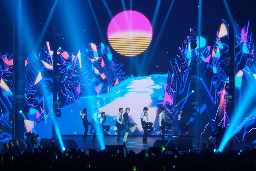 가로 30M 세로 10M 무대 백월에 사운드 인식 기능을 활용한 미디어 인터렉티브 시스템. 가수들의 음악에 반응하여 컬러와 이미지, 효과 등이 다르게 발현되는 무대 시스템 개발.